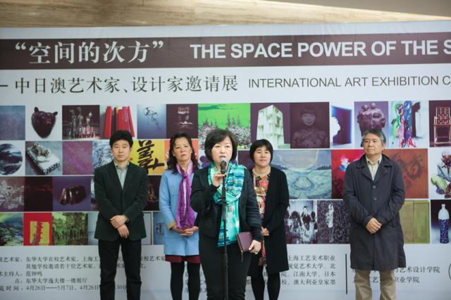 副校长刘春红,校党委常委、服装与艺术设计学院党总支书记袁孟红,上海工艺美术职业学院副院长仓平出席展览开幕式,服装与艺术设计学院院长李俊与中外艺术家一同参加开幕式并观展。刘春红代表学校对各位艺术家、设计家的到来表示欢迎和感谢,她指出,此次展览是48位艺术家、设计家一次跨界合作的有益尝试,也是学校海派时尚艺术研究中心研究成果的一次集中展示,展览在为艺术家、设计家们提供展示平台的同时,也为跨界艺术和设计发展增添了新的活力。