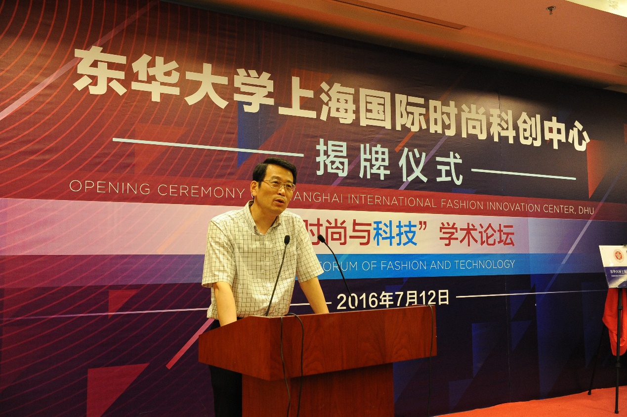 揭牌仪式结束后,举行了以“时尚与科技”为主题的学术论坛。论坛由海派时尚设计及价值创造协同创新中心主任刘晓刚教授主持,范金土教授、张肇达先生、卞向阳教授分别作题为“国际视野的时尚科创”“中国时尚的现在与未来”“上海距离时尚之都的一步之遥”的学术报告。
