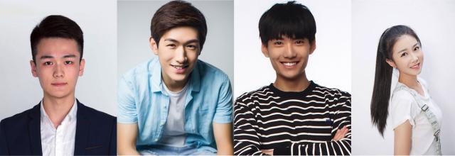 (主要演员:段玉(左一,饰青年钱宝钧)、赵晨辉(左二,饰中年钱宝钧)、张康康(左三,饰老年钱宝钧)、黄若元(右一,饰钱宝钧夫人王箴))