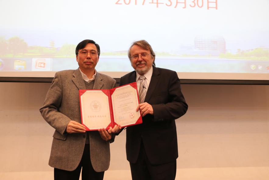 (卿凤翎副校长代表学校为朱利叶斯·温科教授颁发聘书)