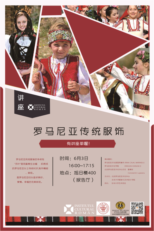 罗马尼亚民间服饰是罗马尼亚女性创造力的一个体现,无数例证表明了罗马尼亚女性的心灵手巧,当你看到各个地区的传统节日服装的时候,都会被深深吸引,同时罗马尼亚传统服装也很好地传承了几个世纪以来重要的文化。罗马尼亚每一件传统服饰都是“一本人类经验与智慧之书”,当你想真正了解罗马尼亚人的灵魂与精神世界的时候,请打开它。