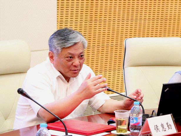 (朱民书记(右三)会见侯惠勤教授(右四))