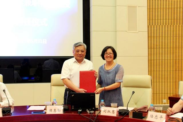 (刘淑慧副书记为侯惠勤教授颁发聘书)