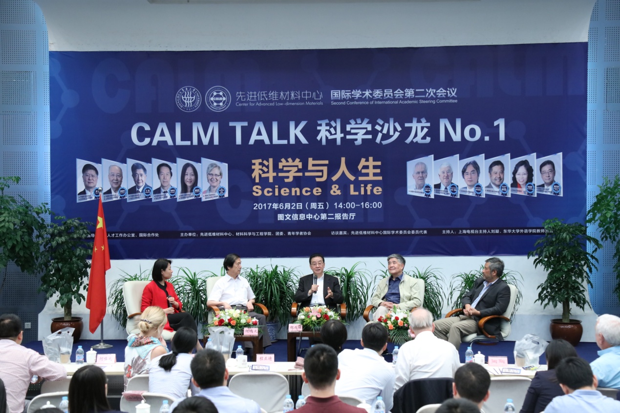 围绕青年师生们感兴趣的成长话题,6月2日,CALM TALK第一次科学沙龙在我校松江校区开讲。先进低维材料中心国际学术委员会委员代表们面向青年师生,畅谈“科学与人生”,让师生们在浓浓的学术文化氛围中传承理念、感受真谛。校党委副书记刘淑慧出席本次沙龙,相关学院或部处负责人、师生代表参加活动。上海电视台主持人刘凝、我校外语学院教师田洁分别主持了中文及英文访谈。