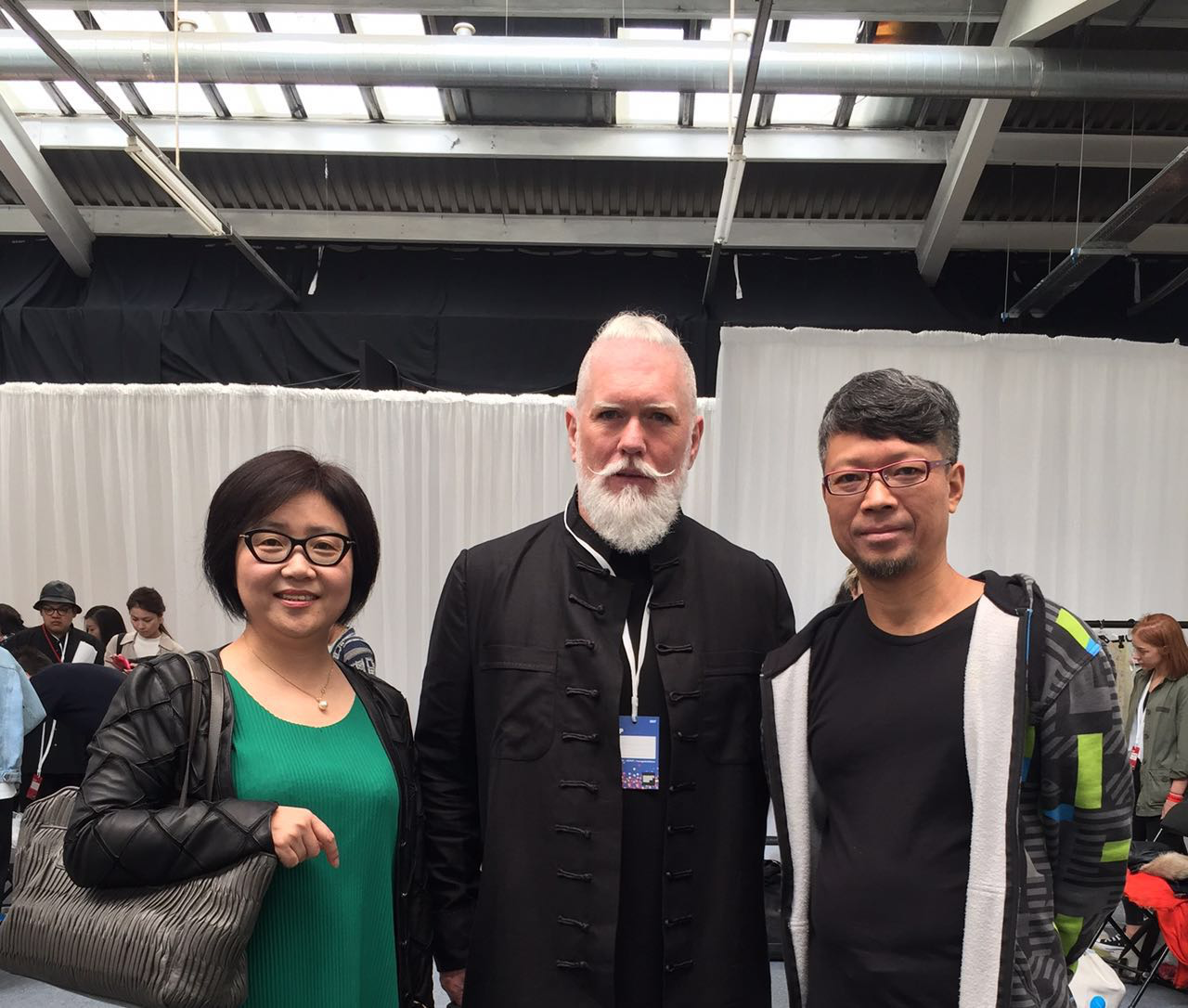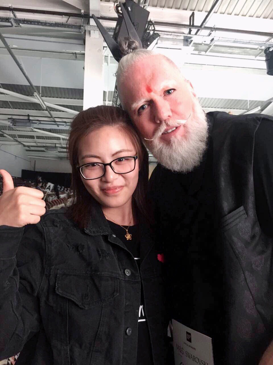 (设计师姚瑶(左)与大赛专家阿德里安(Adrien Yakimov Roberts)(右)合影)