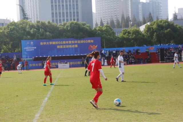 作为校庆活动的重头戏,东华足球60周年庆祝活动也在当天同步举行。足球嘉年华、超级组女足VS校友元老队友谊赛以及东华校友明星队VS东体上海明星足球队明星赛,让返校的校友们着实过了一把足球瘾,也让他们亲身体验到了母校浓厚的足球氛围。
