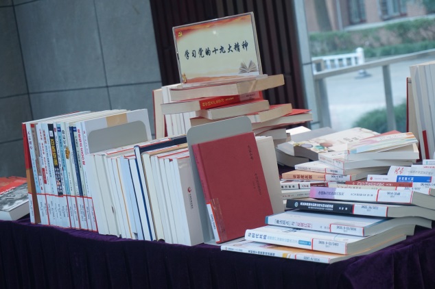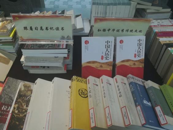 本次书展围绕学习宣传贯彻党的十九大精神、跟着习近平总书记读书、弘扬中华优秀传统文化、青春飞扬等模块展出相关书籍,主要包括《建党伟业》《改革中国》《全面从严治党的制度保障》《中国文化史》《习近平总书记系列讲话精神学习读本》等,引导师生了解中国发展的伟大历程,缅怀革命先烈,传承红色思想,展望大国未来,践行历史使命。