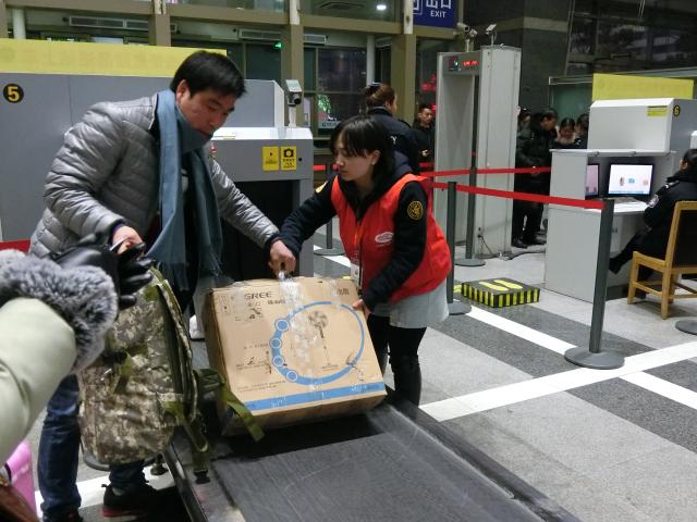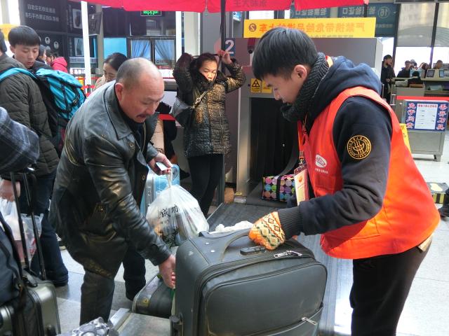 “我们一个小小的帮助可能会很大程度上方便旅客,让他们在寒冷的冬季感到一丝温暖,向社会传递一种助人为乐的正能量。”在安检口岗位上,来自理学院的志愿者李志宇表示。安检口可能是所有岗位中体力消耗最大的,活动开始以来,安检口的每一位“橙员”坚守岗位,帮助旅客提递行李,及时疏散拥堵旅客,将一件件的行李从安检机上提起、摆好,又俯身去提取下一件行李,就这样耐心地重复着,避免拥堵。