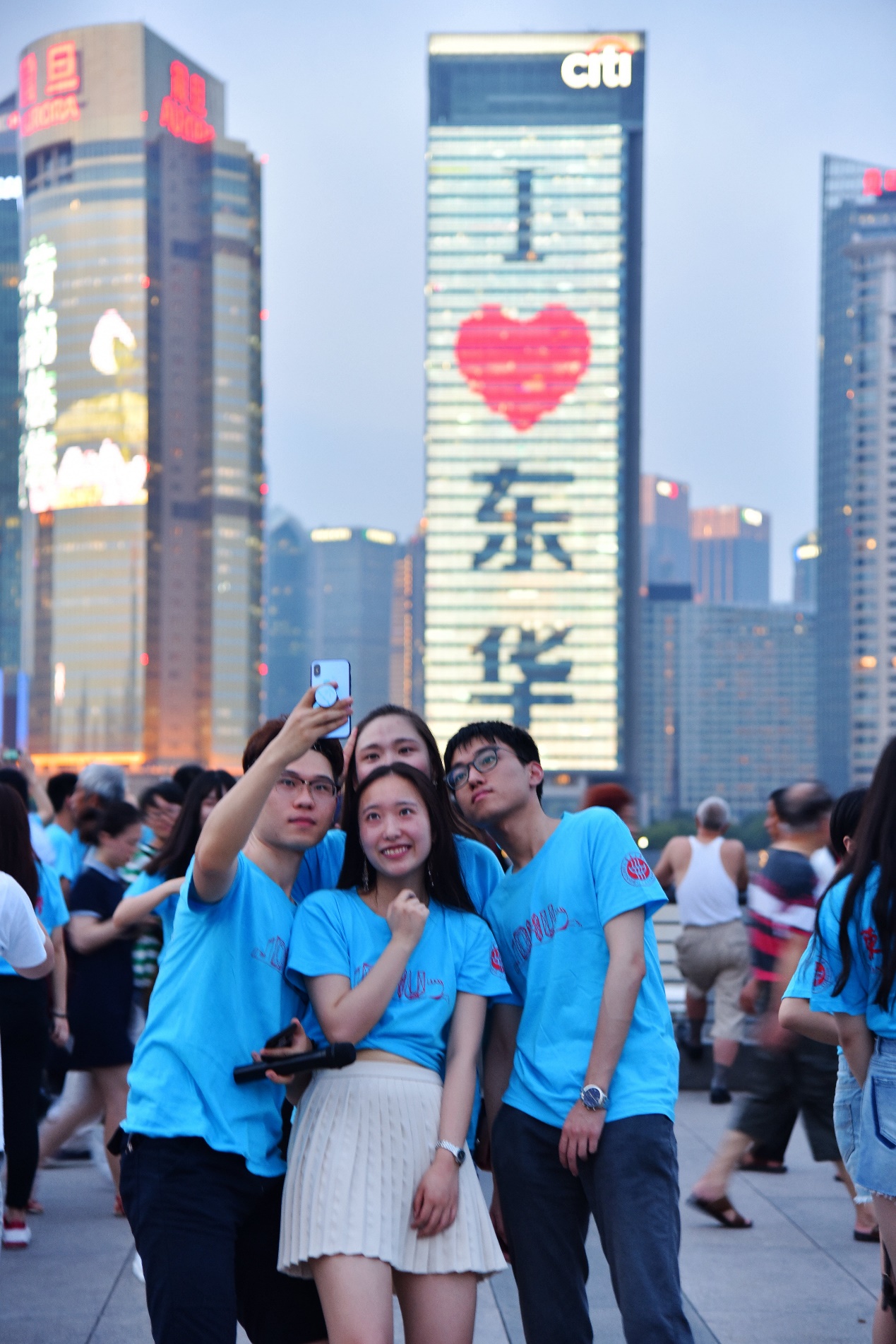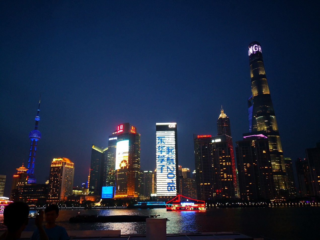 此外,“崇德博学 砺志尚实”“经纬中国 锦绣东华”这样的亮屏语既是校园文化的集中体现,也唤起了东华人的担当意识,也从一个侧面展现了东华的家国情怀。留言中还不乏向母校“表白”或汇报成绩的内容,人文学院辅导员李华清今年毕业留校工作也参与了现场活动,他说:“我相信很多毕业生和我一样,在亮出“I❤东华”字样的那一瞬间,激动得泪目了。感恩母校送给我们这样的毕业礼,让我们这群东华人此刻在外滩成了最闪亮的风景,七载东华人,一世东华情,我们会带着东华精神继续奋斗在新征程上,用奋斗点亮东华人的炫丽明天!”机械学院研究生徐少东参与了现场活动,他说:“昨夜的外滩亮屏活动,火爆了整个朋友圈,一句东华气质更是在历届的东华学子中口口相传。我相信,‘崇德博学、砺志尚实’是东华人求真学问的气质;诚正为公、精益求精是东华人做实干家的气质;经天纬地、锦绣中国更是东华人新时代的担当气质!新时代新征程,东华人昂首阔步、步履不停,为实现两个百年目标汇聚东华力量!”