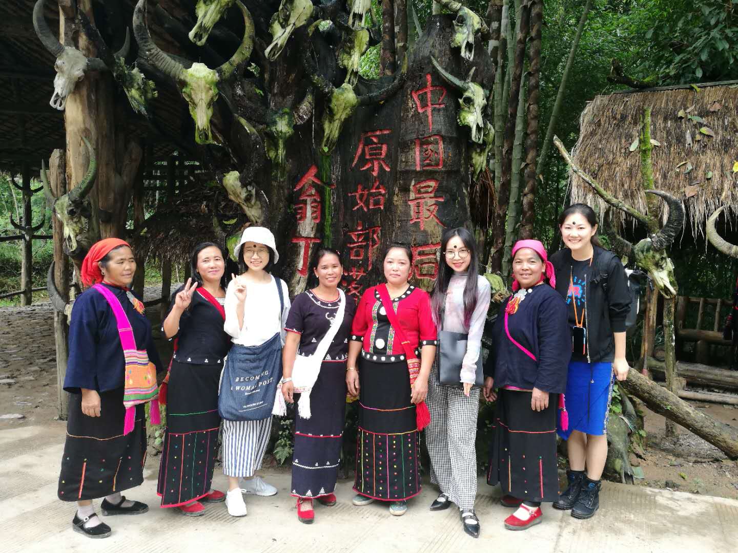 值得一提的是,团队和佤族文化研究的几位老前辈们开展民族服饰座谈,拜访了巴饶民族服饰服装店。这家店是当地一名“特殊的残疾人”陈红疆大姐开的,她虽有残疾,但仍四处收集佤族民族元素,展开服装和服饰从设计、制作到销售的全过程,服务于当地佤族人。她非常用心地经营着这家店,现在已经初见成效,店里也聘请了多名下岗工人和残疾人士一同创业。通过座谈,团队师生从沧源佤族自治县中国佤文化研究发展中心的前辈老师们那里得到了很多关于佤族服装的历史发展、特点表现和存在的问题,同时结合东华在服装服饰方面的经验提出了很多关于佤族文化传承的建议,希望她们能够带领着当地的积极分子走出来多看看、多学学。当地民众也希望东华的专业团队能够走进沧源,用专业的力量协助她们脱贫致富。