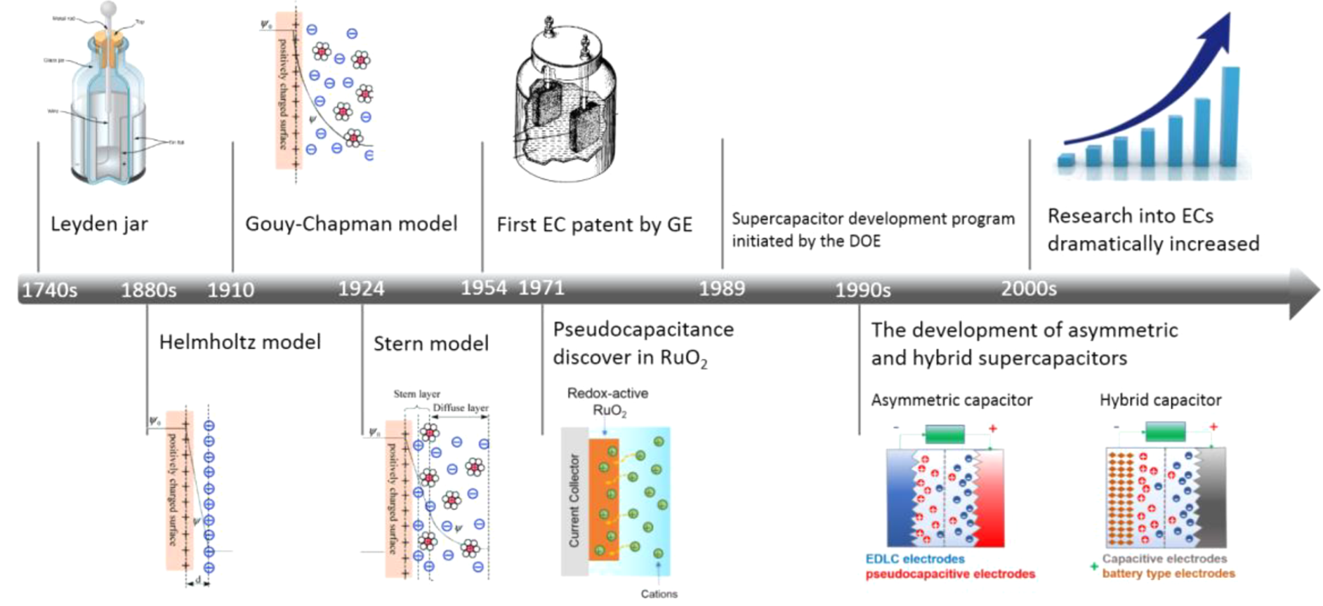 该综述论文概述了超级电容器的发展历史,详细介绍了其储能机理以及超级电容器的评价机制,并分门别类的对电容型非对称超级电容器、金属离子电容、混合电容和氧化还原离子电容等进行详细介绍及机理分析。该综述还从探索和开发新的电极材料、拓宽超级电容器的工作电压及能量密度、探索更多种类的低成本的金属离子电容等八个方面对超级电容器的研究进行展望,为超级电容器的下一步研究发展指明了方向。