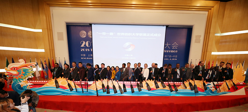 今年是中国提出“一带一路”倡议五周年。当天下午,“一带一路”世界纺织大学联盟(以下简称为“联盟”)成立,陈南梁主持联盟成立仪式。我校联合其他18国共33所纺织特色高校成为联盟首批成员高校。该联盟系当前参与高校最多、对“一带一路”沿线国家覆盖率最高的世界纺织类高校联合组织。
