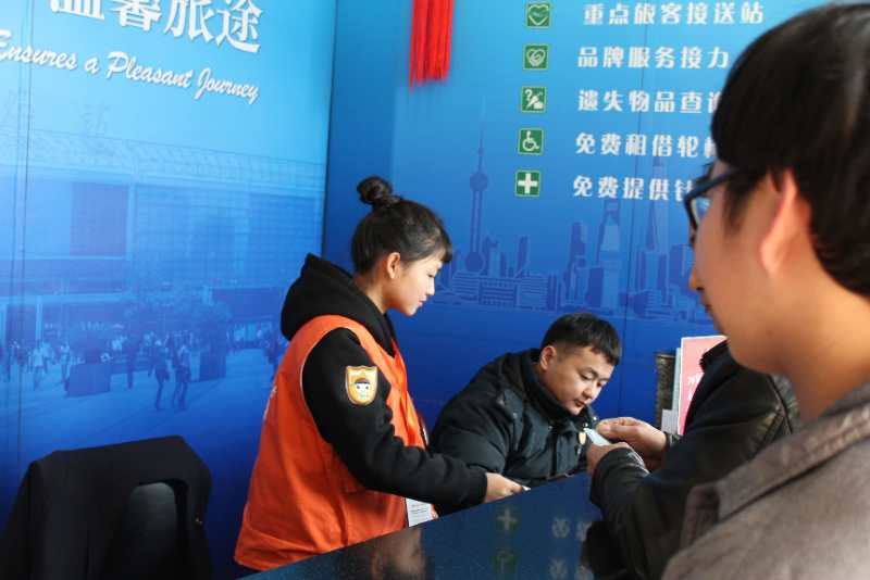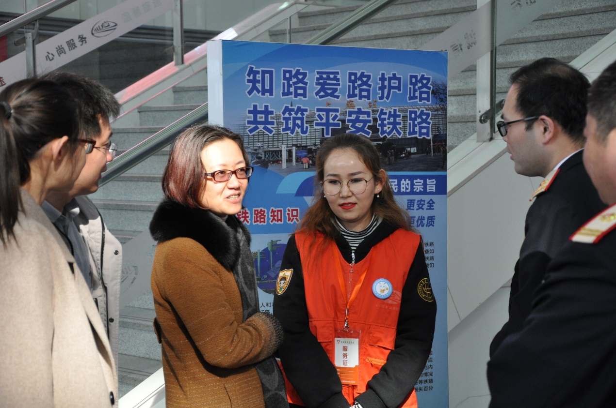 1月25日,党委副书记刘淑慧与相关部门负责人一行前往上海站,在上海站客运车间党总支书记陈飞、上海站团委副书记胡熠华的陪同下,到各个志愿者岗位亲切慰问辛勤工作的志愿者,与同学们亲切交谈,关心大家的身体状况与春节回家购票情况。刘淑慧高度赞扬了“小甜橙”志愿服务与“小甜橙”青年志愿者“奉献、友爱、互助、进步”的精神,并表达了“小窗口大世界”的观点。她说,火车站虽然是很小的一隅,但却能反映世界百态,希望志愿者们在志愿服务的同时,多多思考观察社会百态,在锻炼能力的同时增长个人阅历。