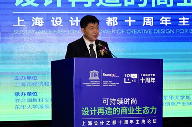 俞建勇代表学校向论坛召开表示祝贺,向给予学校发展大力支持的上海市委、市政府,中国纺织联合会,上海市经信委,长宁区政府表示感谢,并介绍了学校在优势特色学科建设、构建时尚创意学科链、国际创意设计人才培养模式等方面做出的努力和取得的成绩。他指出,学校紧紧围绕上海市和国家发展新格局,坚持以学科为统领的高质量发展,积极服务上海各方面发展。面对突如其来的新冠疫情为产业变革带来的新机遇和新挑战,学校要承担起产业发展的使命与责任,以高质量的创新与发展,助力可持续、“双循环”新发展格局的构建。他期待与会嘉宾为上海探索可持续时尚发展之路贡献智慧,为上海文化创意产业的持续繁荣和上海设计之都建设贡献力量。