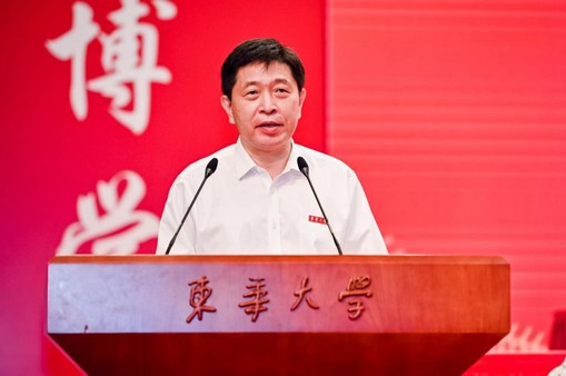 “才不大者,不能博见”,个人的学识、修养和本领从来都不是天生的,需要在广学明辩、日积月累中慢慢养成,从今天起,东华将有幸见证你们的成长与成才。大学是知识的殿堂,为你们发现自身的兴趣爱好、为知识的融汇互通创造了最为宽松的环境,“心以积疑而起悟,学以渐博而相通”,你们在东华的几年,要广泛涉猎,博览群书,不断筑牢知识基础,拓宽知识视野。学习的意义,一方面向内涵养人心,不断增长的学识和才干,最终将使你成为一个知识渊博、才华卓越的人。另一方面其实也唯有博学,方能担当,不负重托。当前,百年变局加速演进,新一轮科技革命和产业变革正在重构全球创新版图、重塑全球经济格局,希望生活在新时代的你们,有勇气、有决心涉足学术前沿和颠覆性的技术创新,探索未知、突破极限,勇做“中国梦”的追梦者、圆梦人!